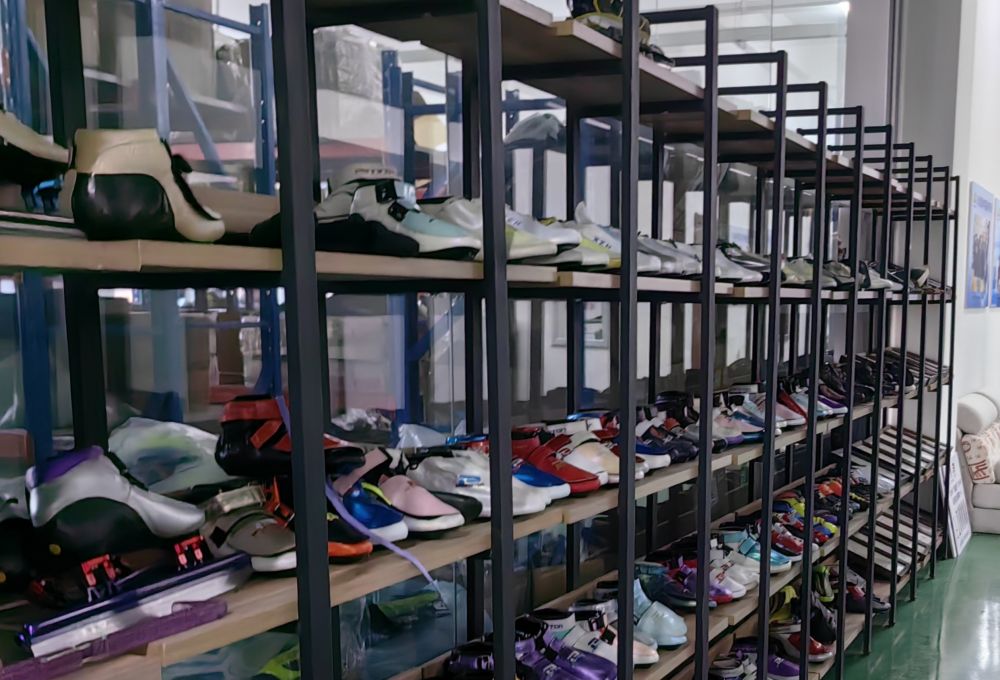 2025年1月2日,長春百凝盾體育用品器材有限公司工廠里擺放的冰鞋樣品。新華社記者王帆 攝