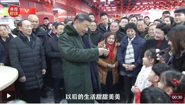 23日上午,正在遼寧考察的習(xí)近平總書(shū)記來(lái)到沈陽(yáng)大東副食品商場(chǎng),了解節(jié)日期間市場(chǎng)供應(yīng)情況。孩子們見(jiàn)到習(xí)爺爺十分高興,熱情地給習(xí)爺爺遞上新買(mǎi)的糖果。習(xí)近平接下糖果,親切地說(shuō),你們的糖我收下,吃了你們的糖心里很甜,希望你們的生活像糖果一樣甜甜美美。