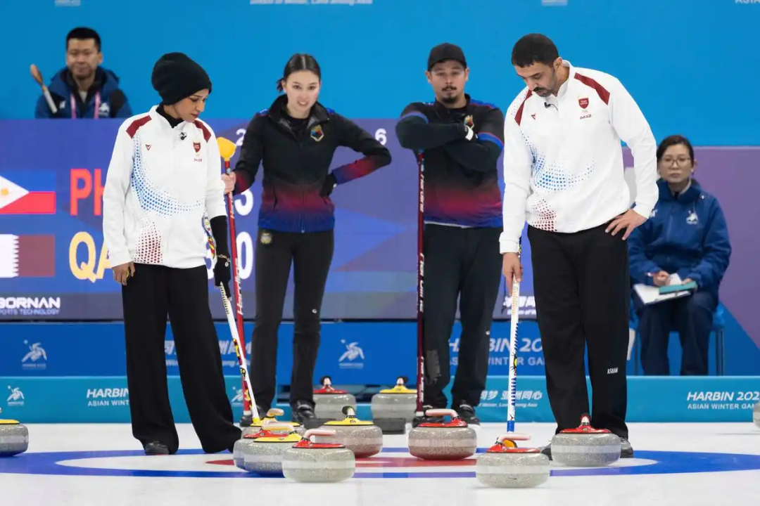 2月5日,亞冬會(huì)冰壺混雙循環(huán)賽B組第3輪比賽中,菲律賓隊(duì)11比3戰(zhàn)勝卡塔爾隊(duì)。