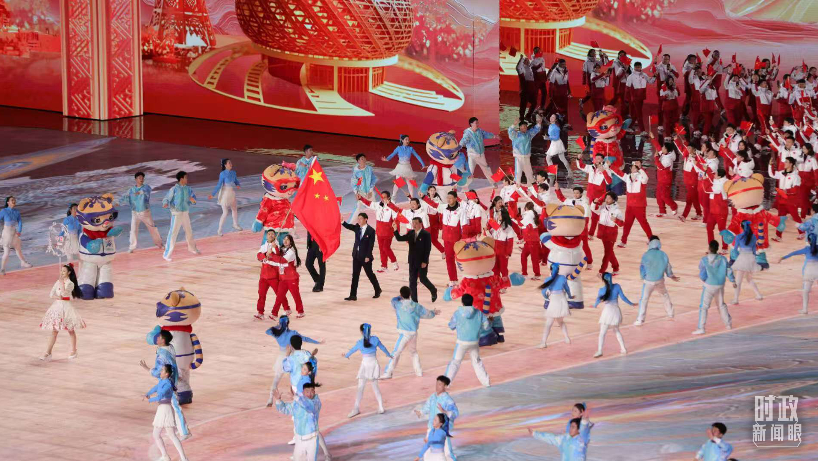 哈爾濱亞冬會開幕式上,中國體育代表團(tuán)入場。(總臺央視記者魏幫軍拍攝)