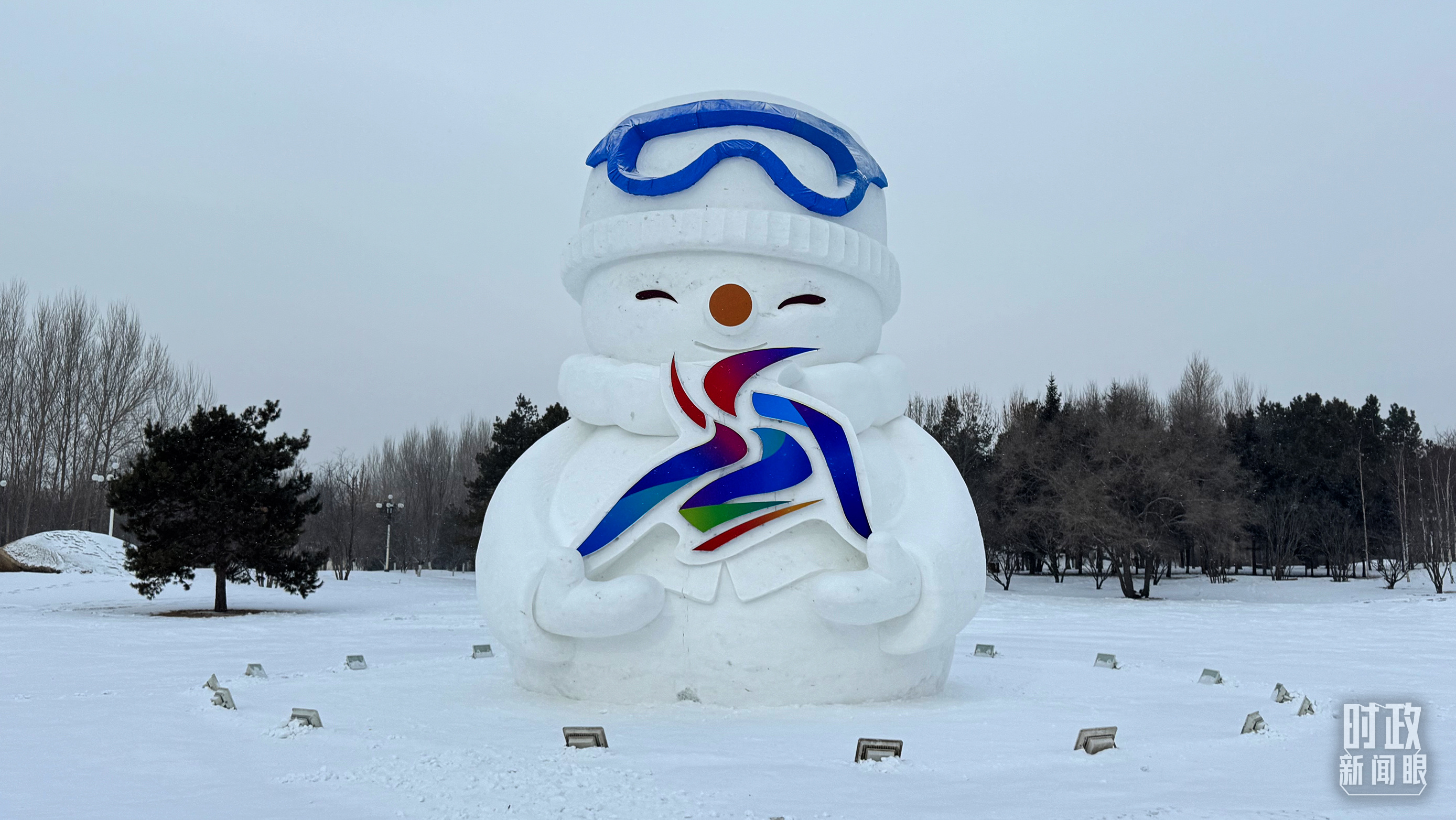 裝飾有亞冬會會徽元素的雪人。(總臺央視記者蔣碩拍攝)