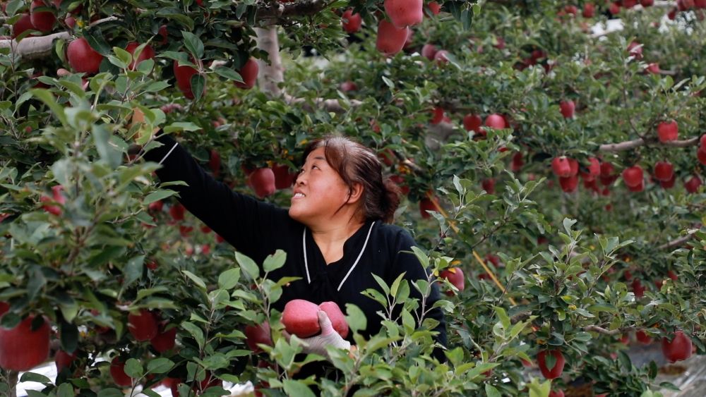 在甘肅天水,豐收時節(jié)的果實綴滿枝頭?;鸺t的蘋果,連接著鄉(xiāng)村全面振興的美好未來。