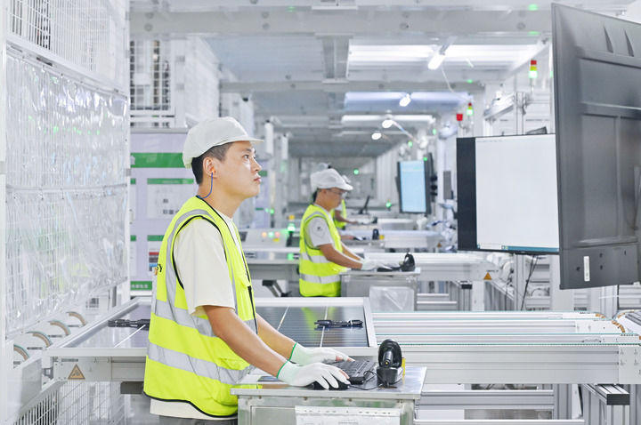 工人在位于浙江省樂(lè)清市的正泰集團(tuán)8GW高效光伏組件生產(chǎn)基地工作(資料照片)。新華社發(fā)