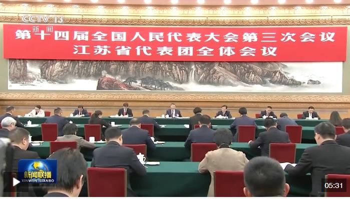 3月5日,十四屆全國(guó)人大三次會(huì)議開幕。當(dāng)天下午,習(xí)近平總書記來到他所在的江蘇代表團(tuán)參加審議。