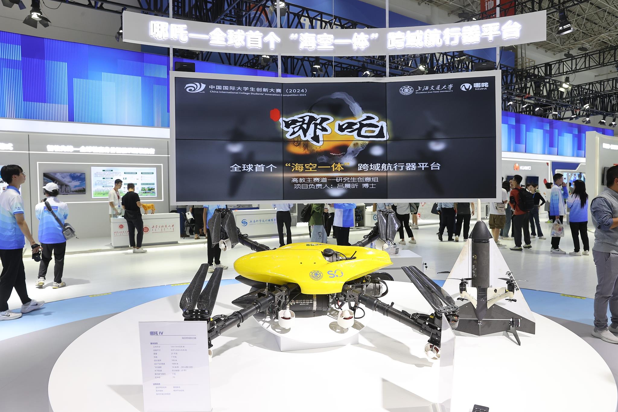 2024年10月12日至15日,中國國際大學(xué)生創(chuàng)新大賽總決賽及同期活動在上海舉行。來自上海交通大學(xué)的“哪吒——全球首個‘海空一體’跨域航行器平臺”項目奪得冠軍。