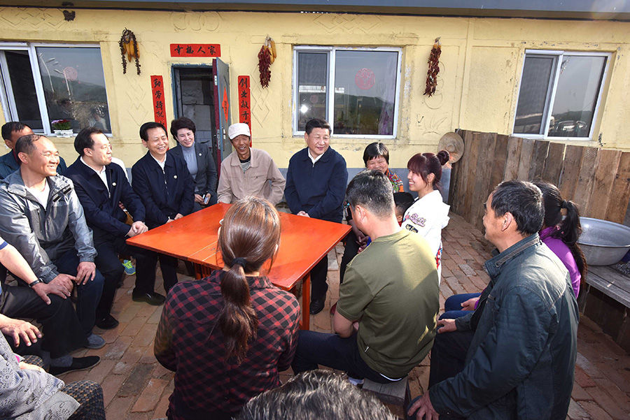 2016年5月23日,習(xí)近平在黑龍江伊春上甘嶺林業(yè)局溪水經(jīng)營(yíng)所林場(chǎng)職工劉養(yǎng)順家,同一家人和鄰居們親切交談。新華社記者 李濤 攝