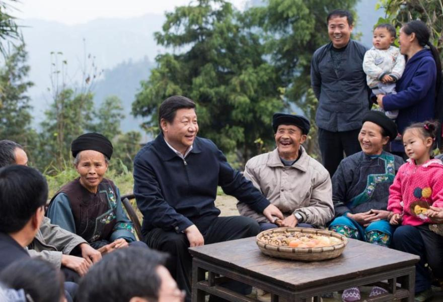 2013年11月3日,習(xí)近平總書(shū)記在湘西十八洞村考察時(shí),同村干部和村民座談。