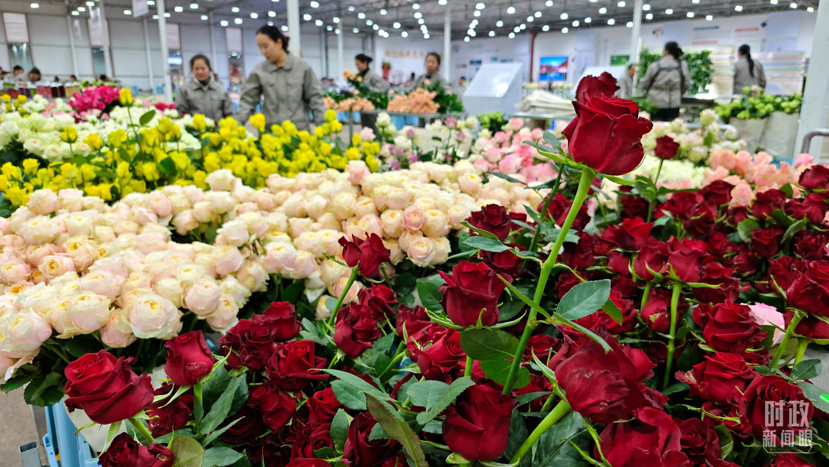 工人正在對采摘下來的鮮花進行整理、分類。(總臺央視記者邢彬拍攝)