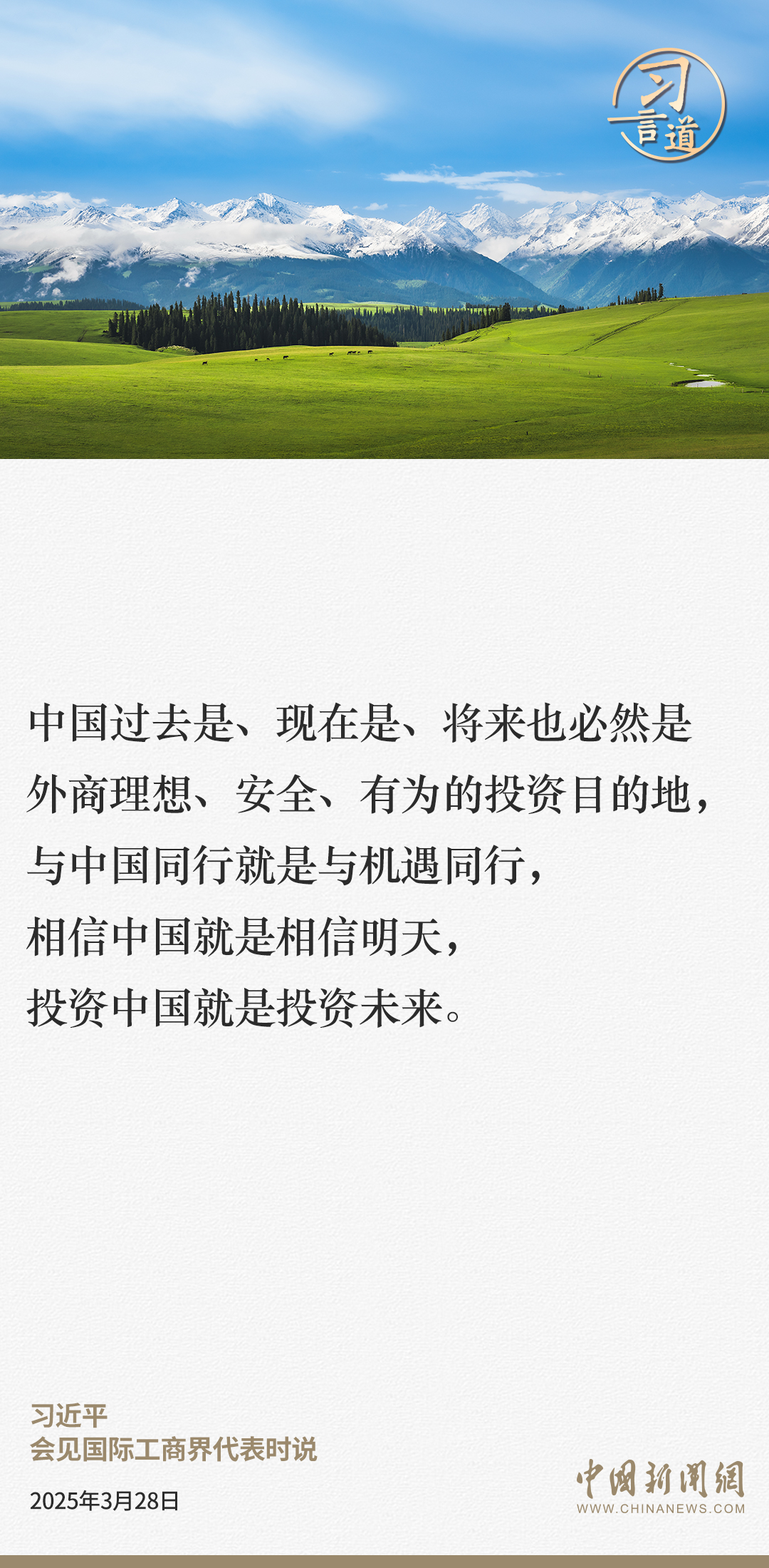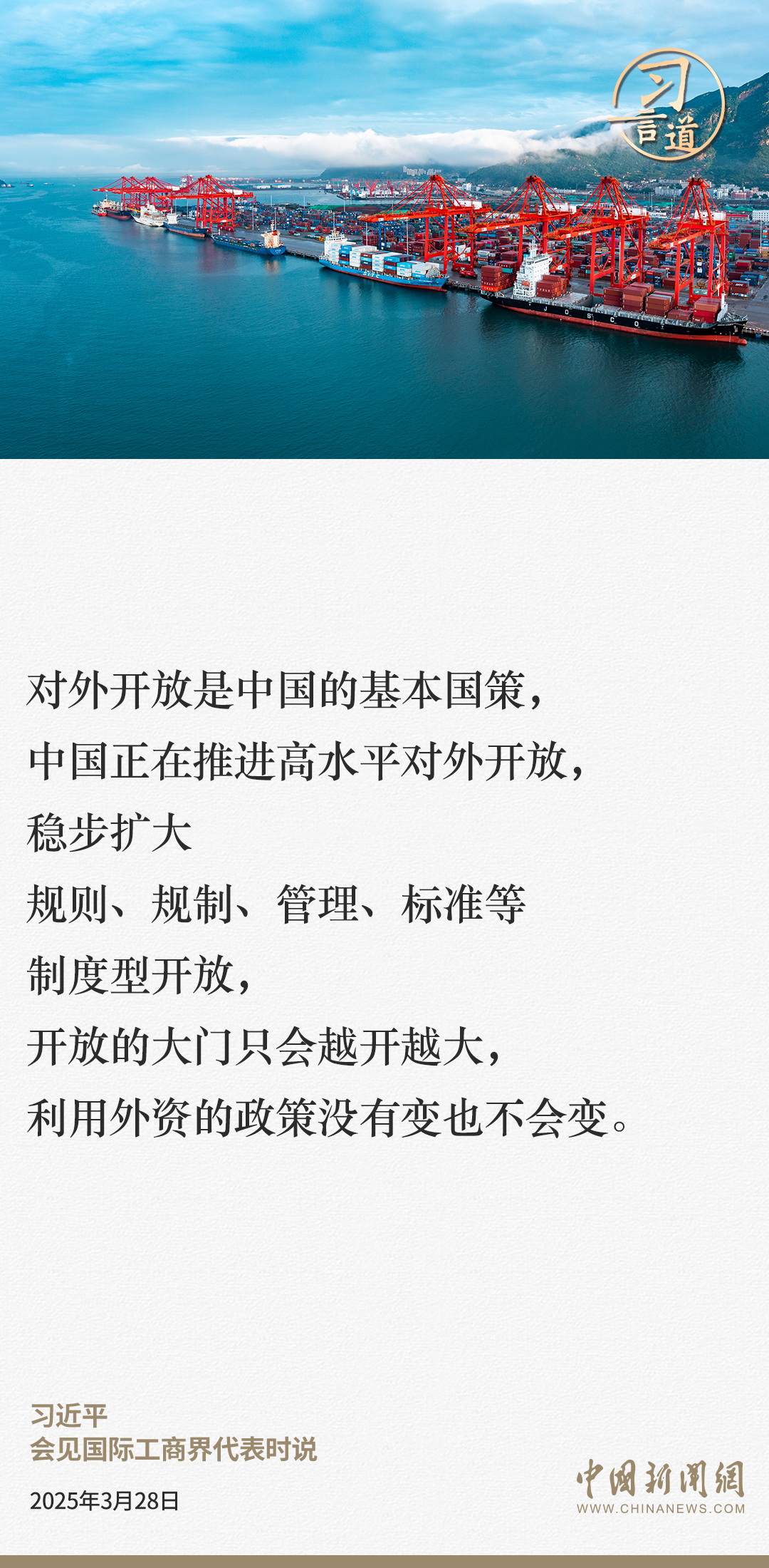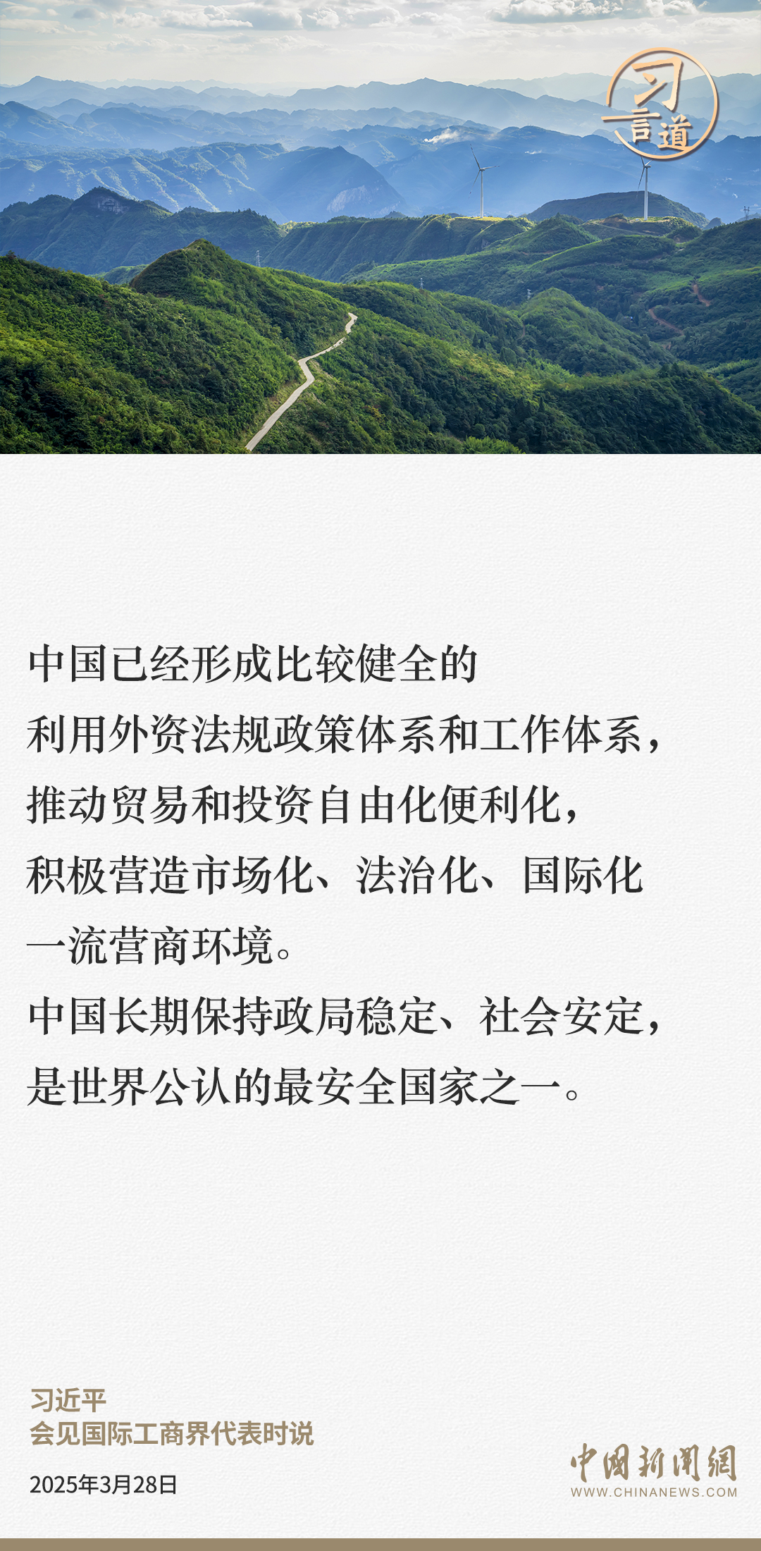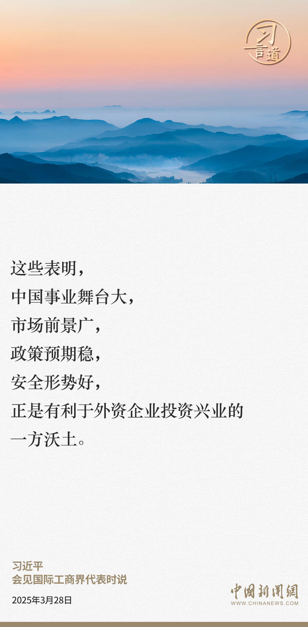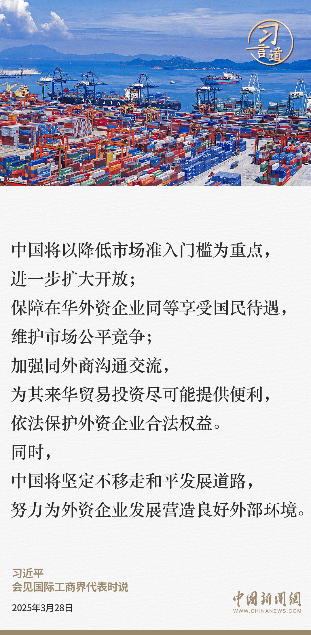 3月28日,國家主席習近平在北京人民大會堂會見國際工商界代表。習近平主席指出——