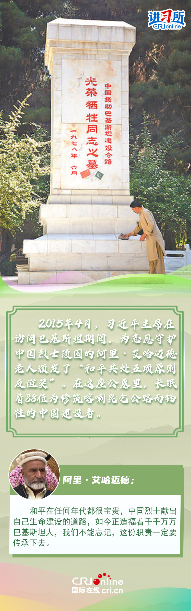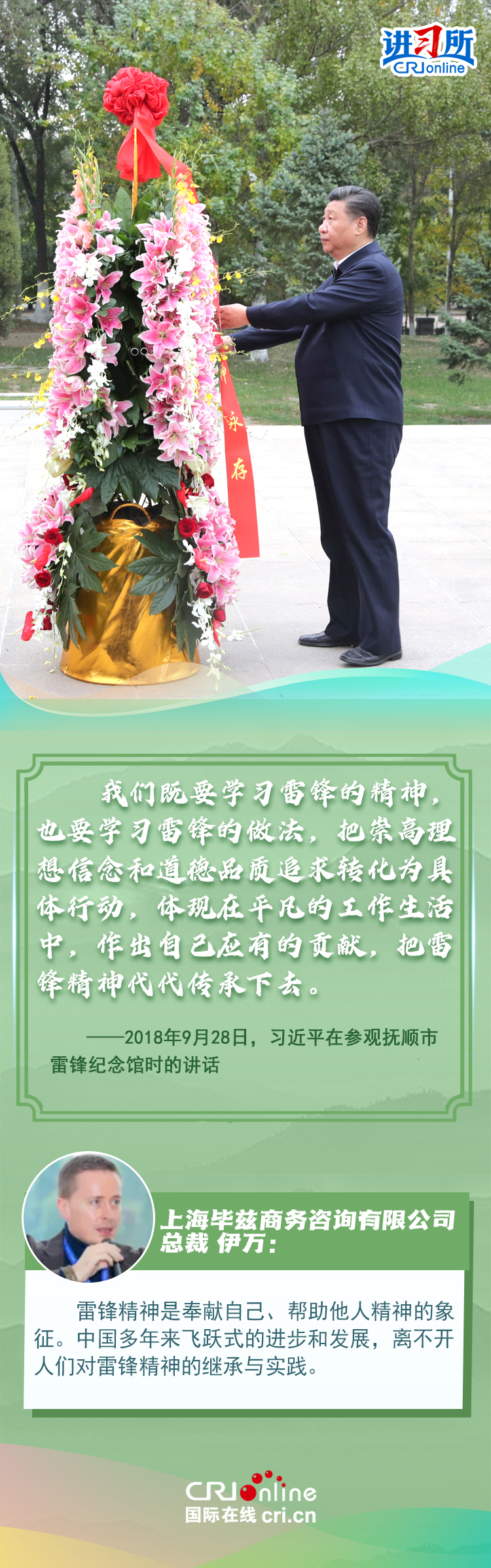 新時(shí)代以來,從設(shè)立烈士紀(jì)念日到出臺(tái)英雄烈士保護(hù)法,再到加強(qiáng)烈士紀(jì)念設(shè)施保護(hù),中國(guó)崇尚英雄、學(xué)習(xí)英雄的社會(huì)風(fēng)尚贏得國(guó)際社會(huì)贊譽(yù)。在國(guó)際人士眼中,中國(guó)多年來飛躍式的進(jìn)步和發(fā)展,離不開人們對(duì)先輩意志的繼承與實(shí)踐。