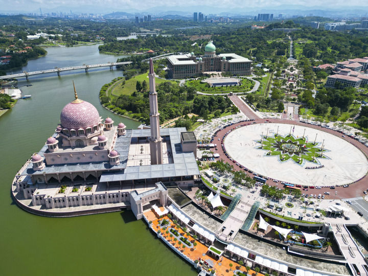 這是2025年3月18日拍攝的馬來西亞行政首都布特拉賈亞景色(無人機照片)。新華社記者 程一恒 攝