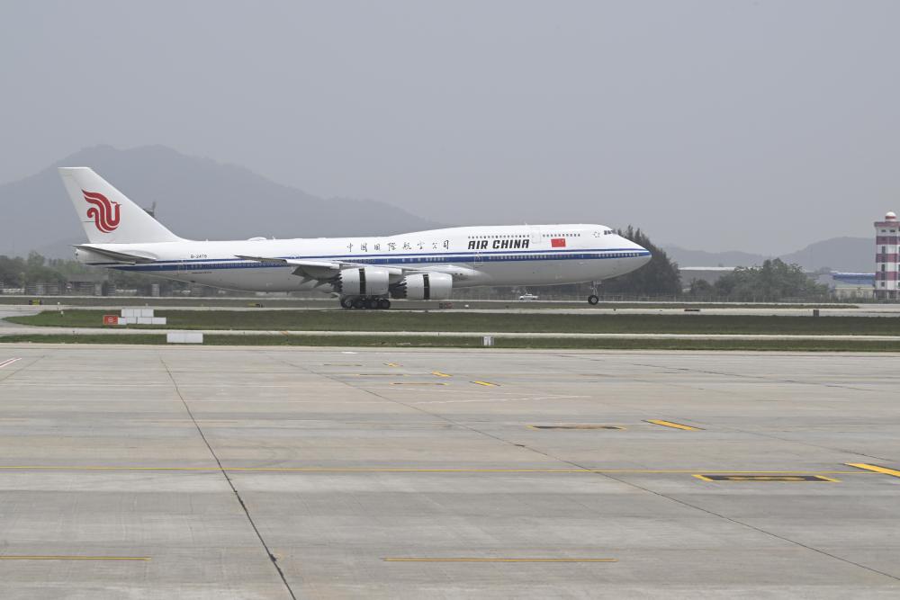 當?shù)貢r間14日11時29分許,中共中央總書記、國家主席習近平乘坐的專機降落越南河內(nèi)內(nèi)排國際機場。