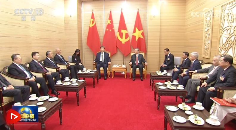 習(xí)近平指出,這次訪問時間雖短,但活動豐富、成果豐碩。雙方重申共同壯大世界社會主義事業(yè)的政治意愿,都期待朝著“六個更”總體目標(biāo)全面推進(jìn)兩國戰(zhàn)略合作,都表示抵御外部風(fēng)險挑戰(zhàn),維護(hù)地區(qū)和平穩(wěn)定和國際公平正義。我對中越關(guān)系發(fā)展前景充滿信心。雙方要全面落實(shí)這次訪問成果,持續(xù)推進(jìn)中越命運(yùn)共同體建設(shè)。