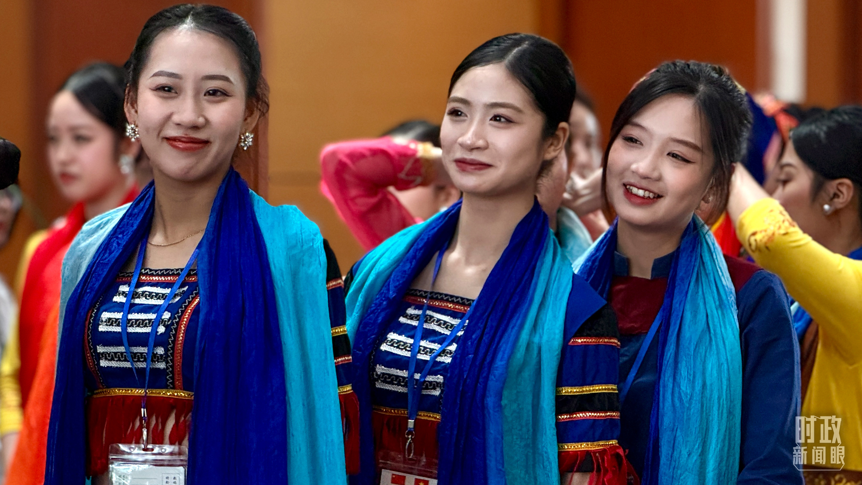 當(dāng)?shù)厍嗄晟碇褡宸b等待迎接習(xí)近平總書記。(總臺(tái)央視記者謝曉光拍攝)