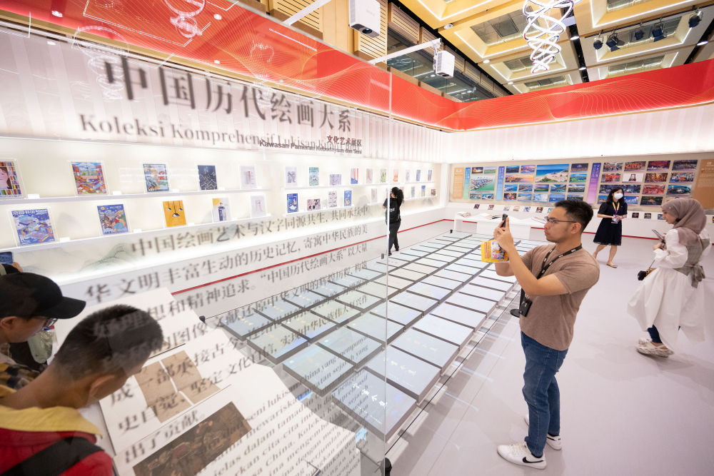 2023年5月26日,觀眾在馬來西亞吉隆坡舉行的第40屆吉隆坡國際書展上觀看“中國歷代繪畫大系”展覽。由浙江大學(xué)、浙江省文物局編纂,浙江大學(xué)出版社出版的“中國歷代繪畫大系”,收錄了海內(nèi)外263家文博機(jī)構(gòu)的紙、絹(含帛、綾)、麻等材質(zhì)的中國古代繪畫藏品12000余件(套),涵蓋了絕大部分傳世的“國寶”級繪畫珍品。