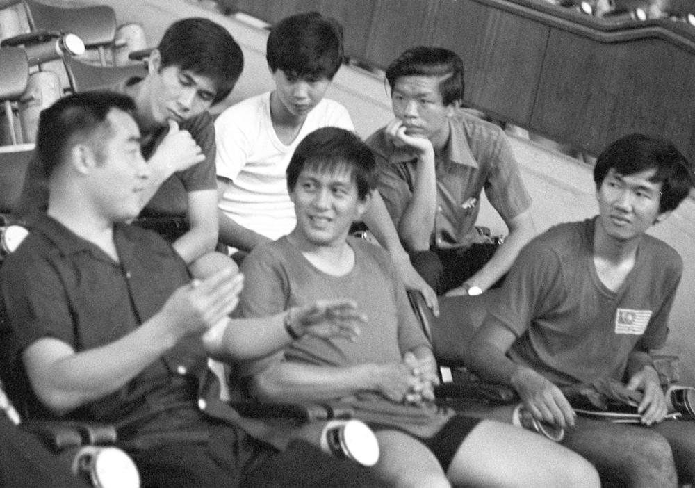 1973年,中國乒乓球代表團(tuán)應(yīng)馬來西亞乒乓球總會的邀請,對馬來西亞進(jìn)行了友好訪問,受到馬來西亞人民的熱烈歡迎。這是1973年6月11日,中國乒乓球代表團(tuán)團(tuán)長莊則棟(左一)同馬來西亞乒乓球運動員一起交流球技。