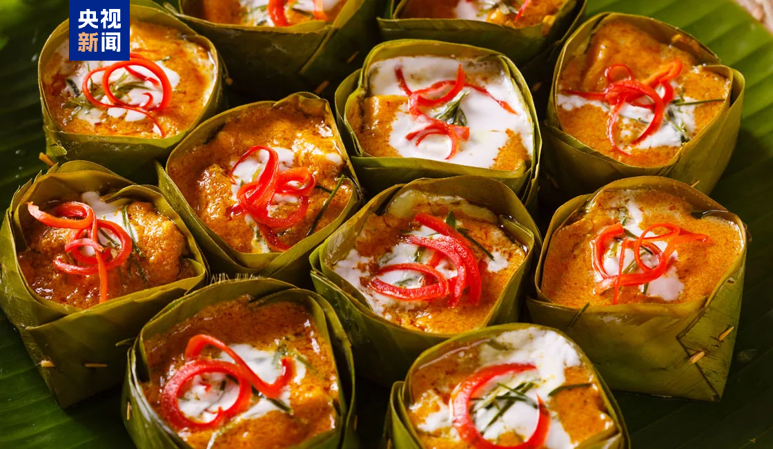 國(guó)菜阿莫克魚(Amok)用椰奶咖喱蒸魚,再用香蕉葉包裹,香氣四溢。