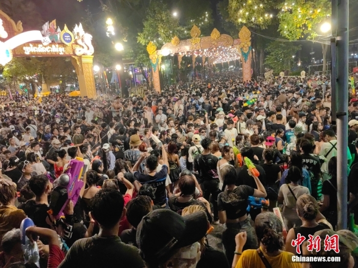 當(dāng)?shù)貢r(shí)間4月14日晚,柬埔寨首都金邊市街頭人潮涌動(dòng)。今年的柬埔寨新年時(shí)間為4月14日至16日,該國(guó)各大城市推出一系列頗具特色的文旅活動(dòng),以期進(jìn)一步釋放節(jié)假經(jīng)濟(jì)潛力。中新社記者 楊強(qiáng) 攝