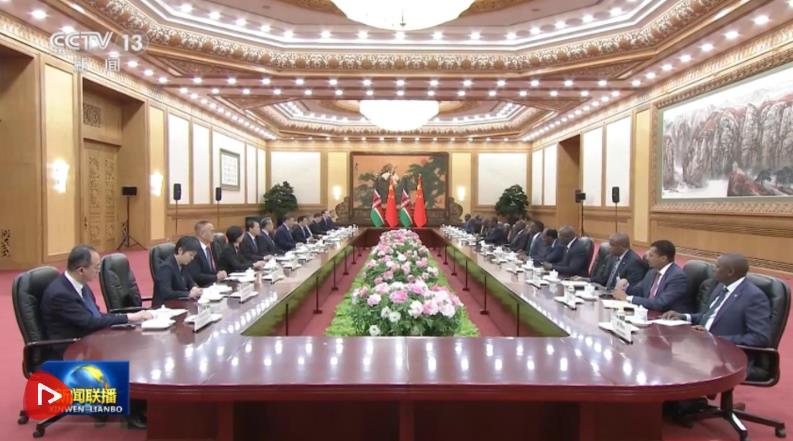 4月24日上午,國家主席習近平在北京人民大會堂同來華進行國事訪問的肯尼亞總統(tǒng)魯托舉行會談。兩國元首一致同意將雙邊關系定位提升至新時代中肯命運共同體。