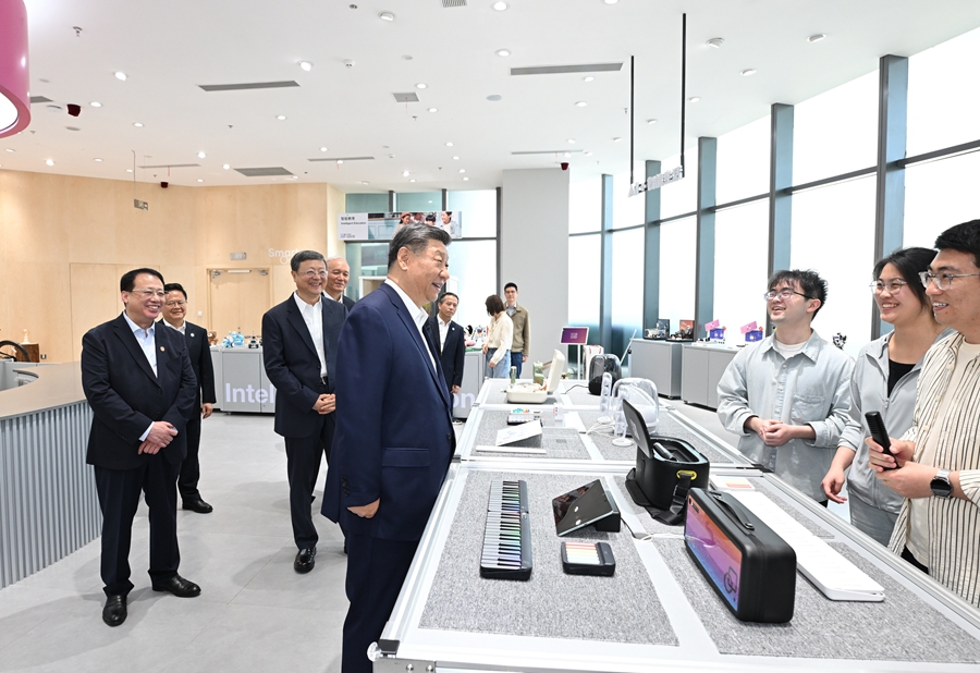 4月29日,中共中央總書記、國(guó)家主席、中央軍委主席習(xí)近平在上??疾臁_@是習(xí)近平在位于徐匯區(qū)的上?!澳K倏臻g”大模型創(chuàng)新生態(tài)社區(qū)人工智能產(chǎn)品體驗(yàn)店考察。
