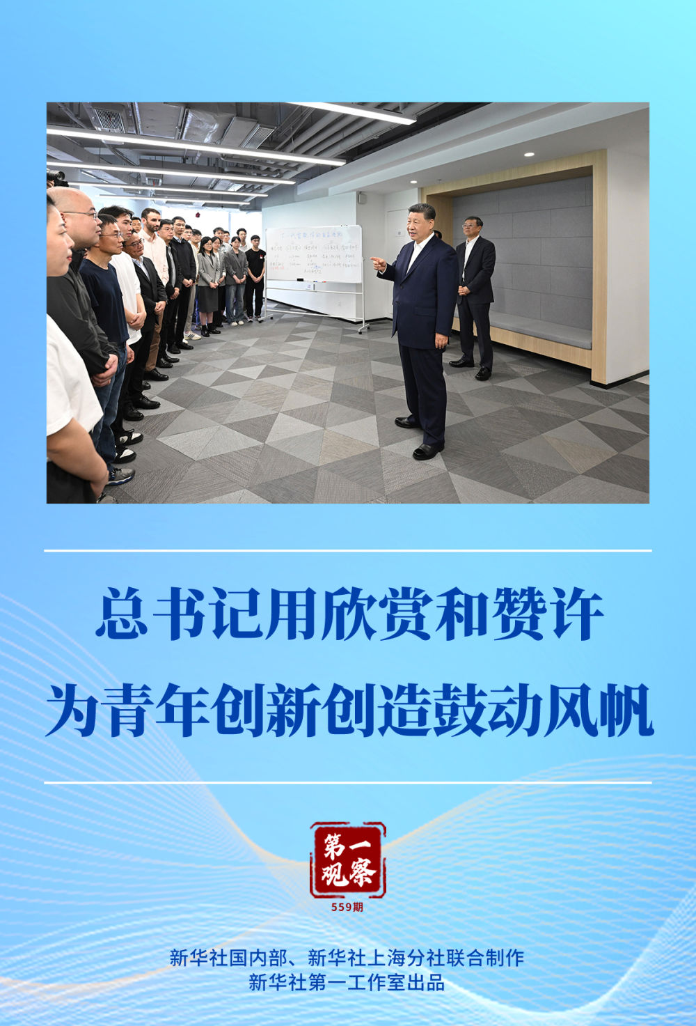 4月29日上午,在上?!澳K倏臻g”大模型創(chuàng)新生態(tài)社區(qū),總書記察看重點孵化企業(yè)的大模型產(chǎn)品展示,并同這里的青年創(chuàng)新人才親切交流。