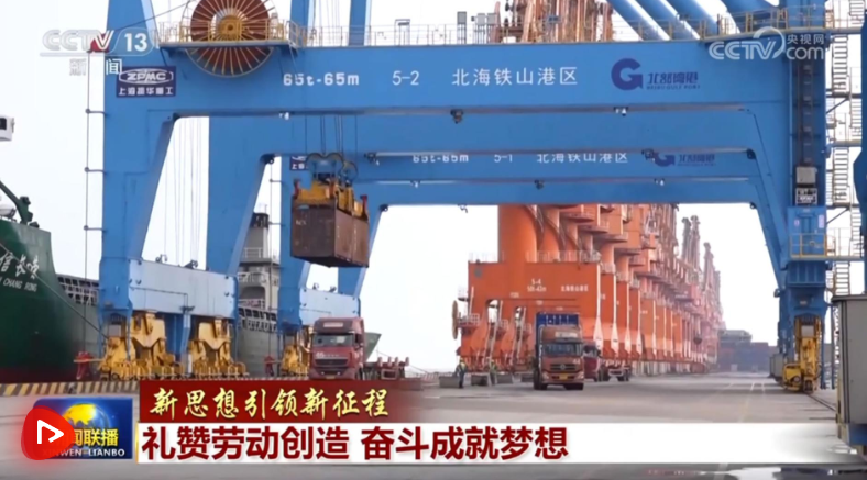 在廣西北海,鐵山港岸橋林立,貨輪有序裝卸,貨車往來穿梭,來自世界各地的貨物在這里高效暢通中轉(zhuǎn)。