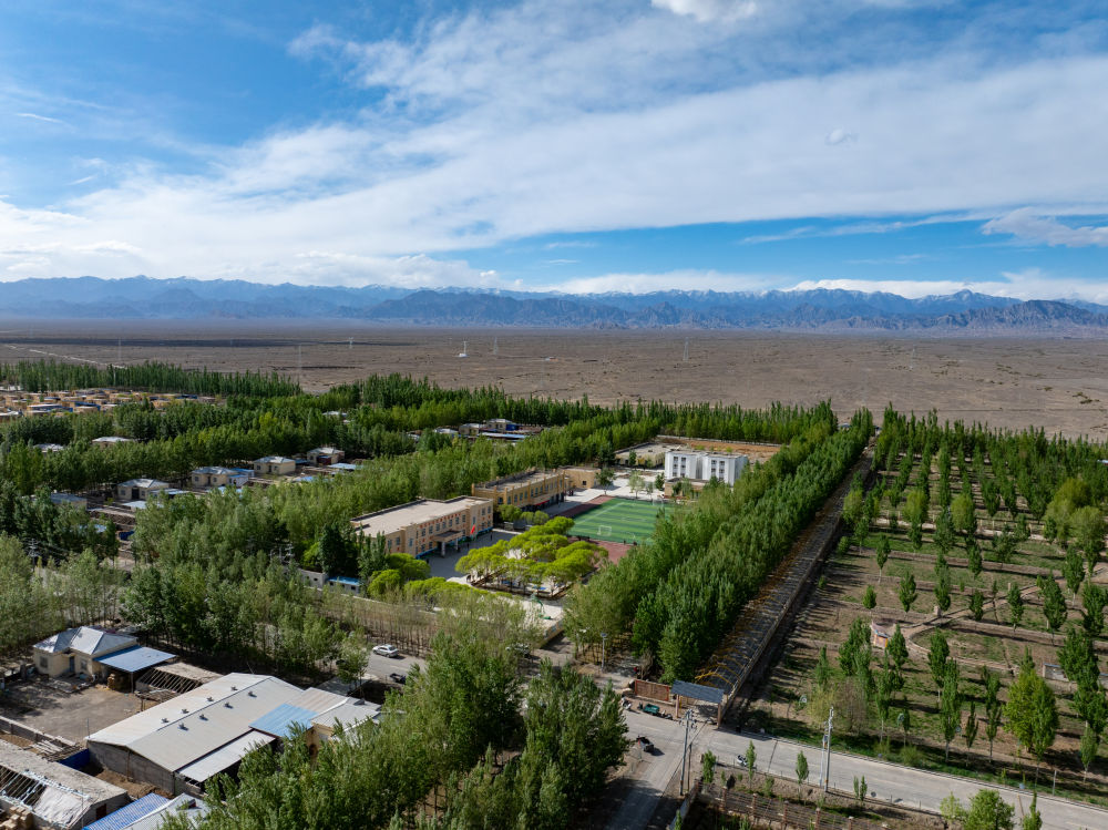 這是4月23日在新疆克州阿圖什市哈拉峻鄉(xiāng)拍攝的謝依特小學(無人機照片)。