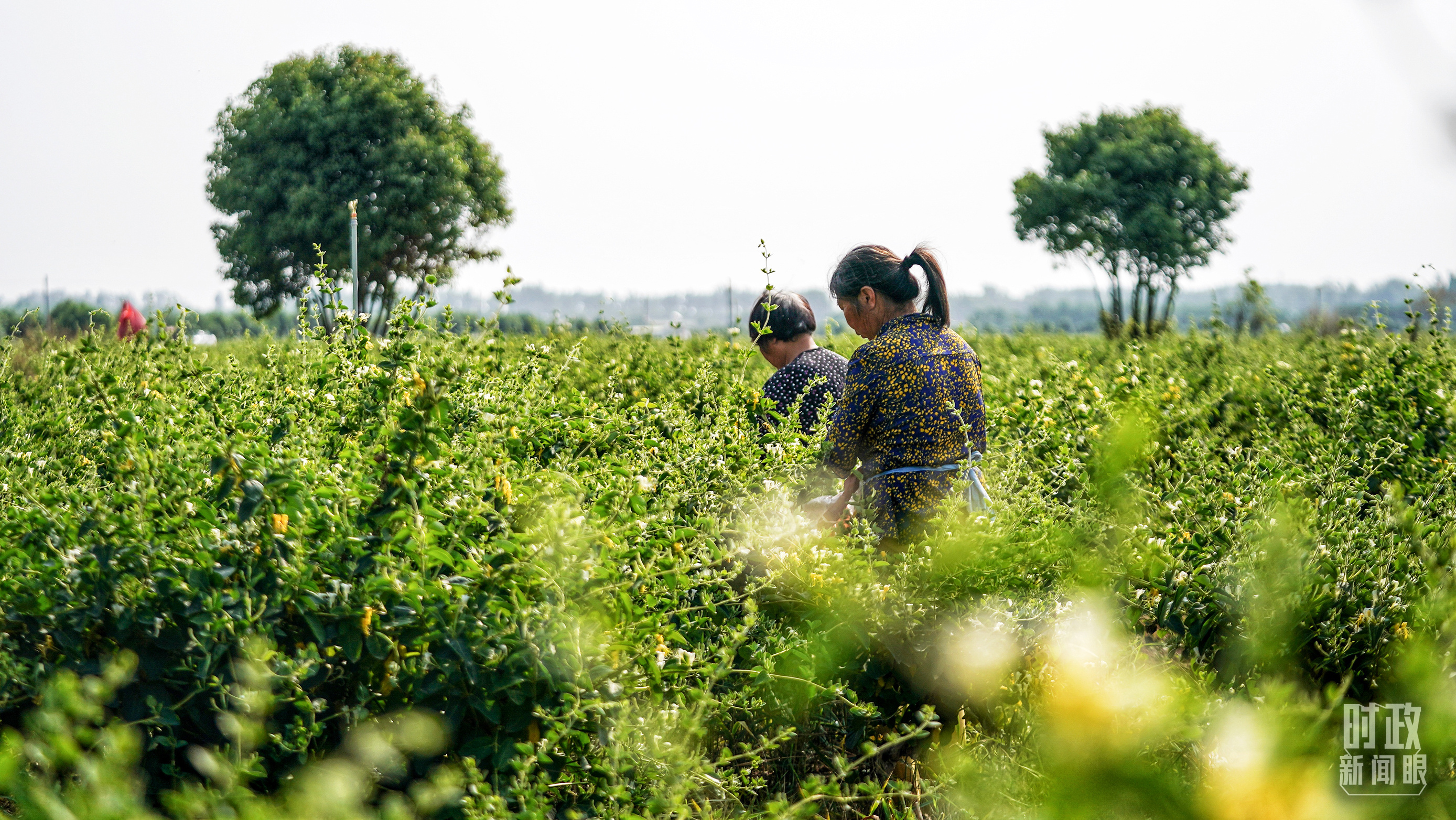 五月,河南農(nóng)民采摘金銀花。(總臺(tái)國(guó)廣記者李晉拍攝)