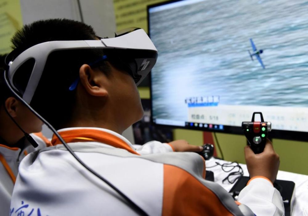 北京市八一學(xué)校的學(xué)生在北京市中小學(xué)生特色科技活動展示上體驗(yàn)VR技術(shù)(2018年11月24日攝)新華社記者 羅曉光 攝。