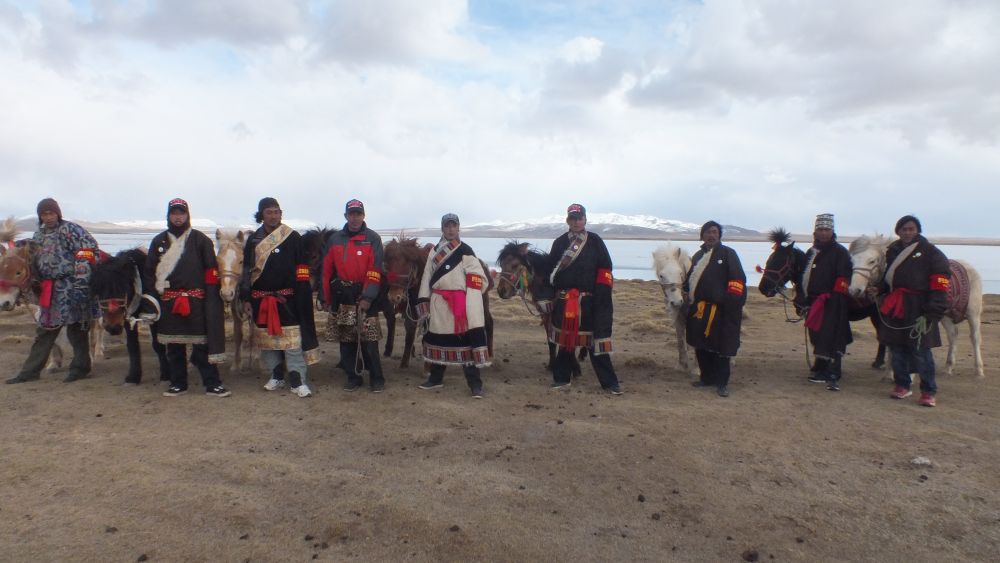 部分長江源村生態(tài)管護(hù)員在巡護(hù)的草原上合影。(受訪者供圖)