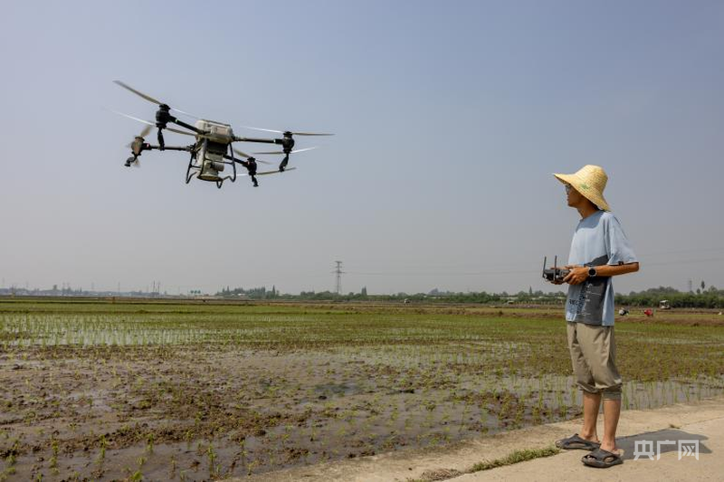 新農(nóng)人王海聰正在操控植保無(wú)人機(jī)(央廣網(wǎng)發(fā) 侯建明 攝)