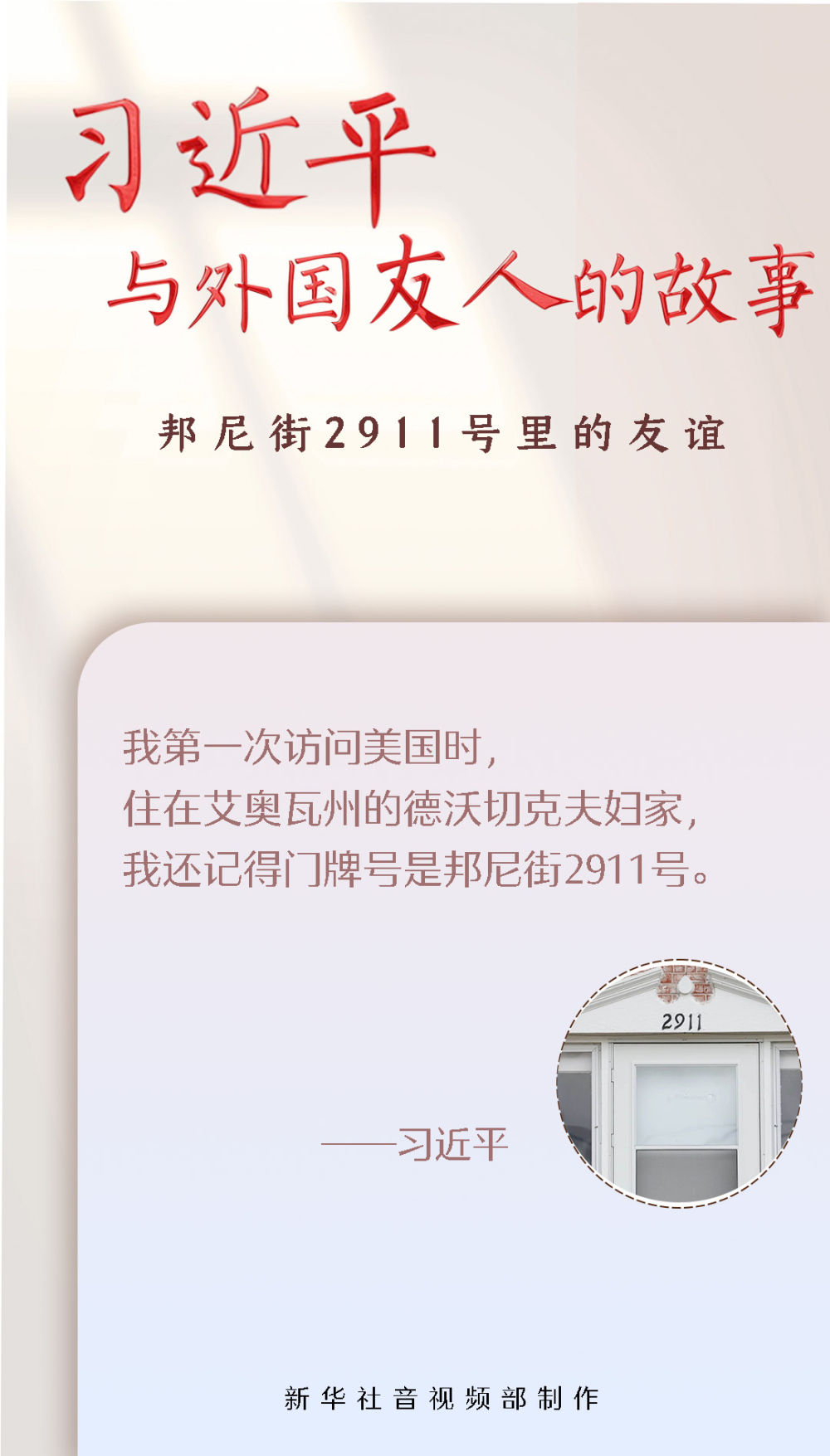 1985年,時(shí)任河北省正定縣委書記的習(xí)近平率團(tuán)訪問艾奧瓦州,住在馬斯卡廷邦尼街2911號(hào)的德沃切克夫婦家中。那是習(xí)近平同美國(guó)民眾首次面對(duì)面接觸,訪問期間,他同當(dāng)?shù)厝嗣窠Y(jié)下了深厚友誼。