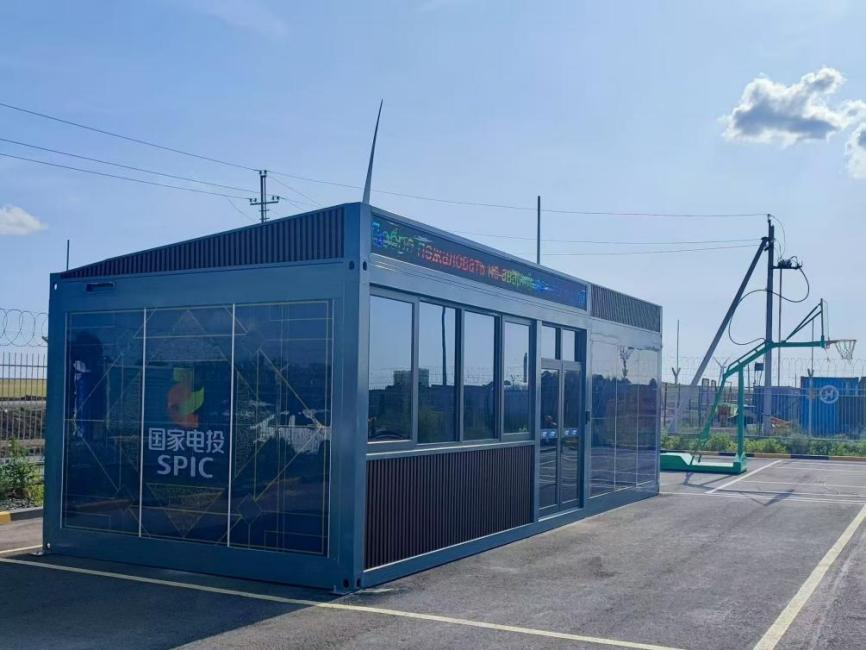國家電投哈薩克斯坦能源投資公司阿克莫拉項目部負責人蔡慧勇介紹安全小屋和項目整體情況。本報記者 李洋 攝