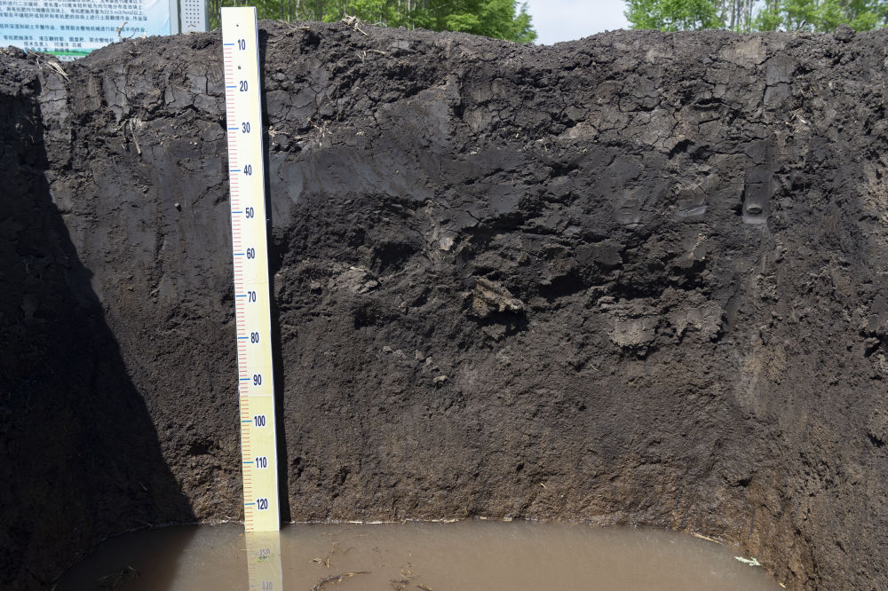 黑龍江省海倫市前進鎮(zhèn)自新村農業(yè)科技示范基地內一處用來觀測黑土層厚度的土壤剖面(2022年5月23日攝)。