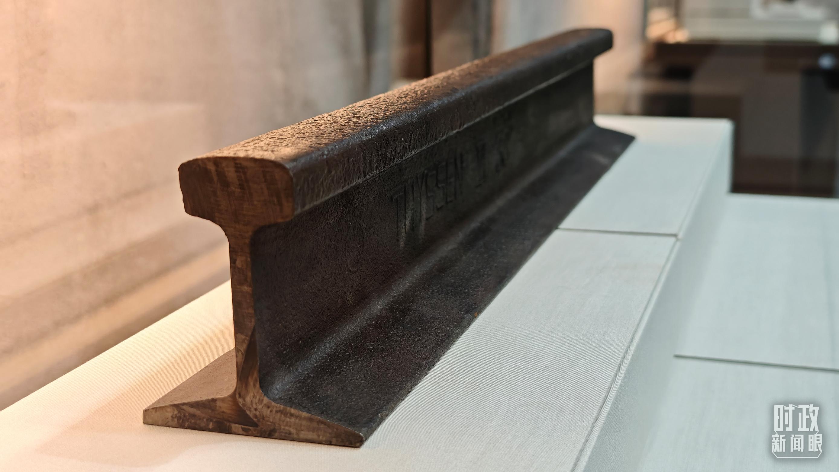 百團(tuán)大戰(zhàn)紀(jì)念館展陳——正太鐵路鐵軌。(總臺(tái)央視記者許永松拍攝)