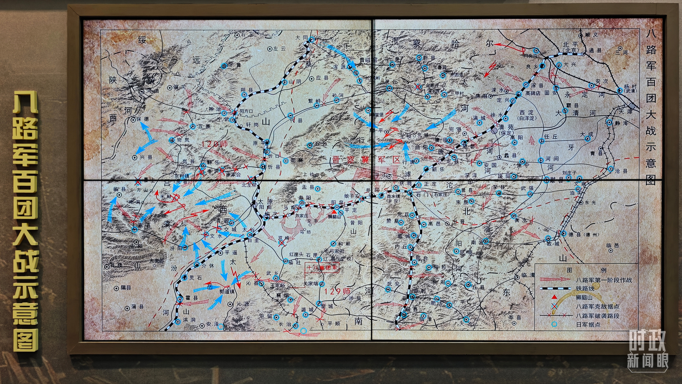 百團(tuán)大戰(zhàn)紀(jì)念館展陳——八路軍百團(tuán)大戰(zhàn)示意圖。(總臺(tái)央視記者許永松拍攝)