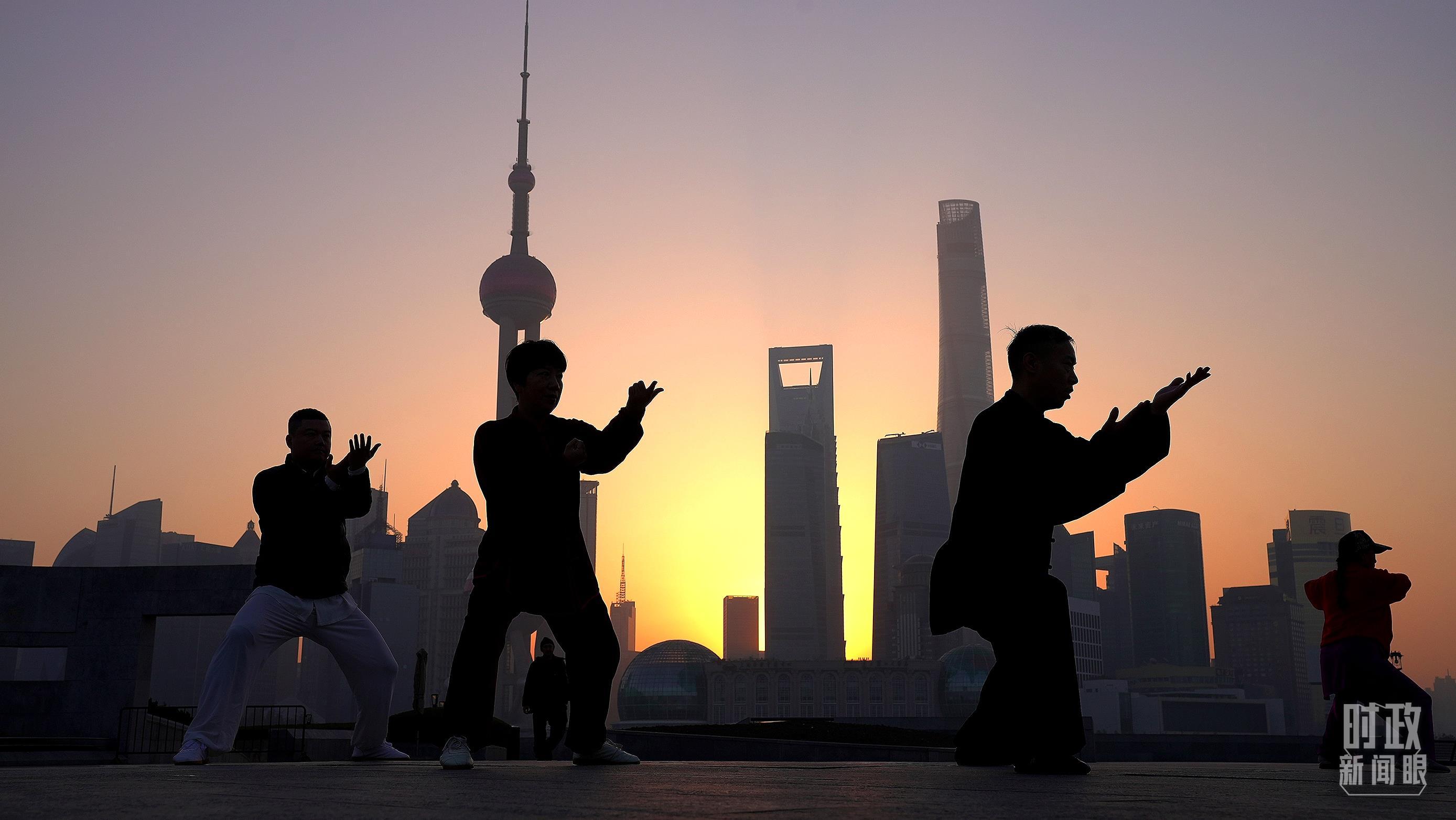 正在晨練的上海市民。(總臺(tái)央視記者劉琦拍攝)