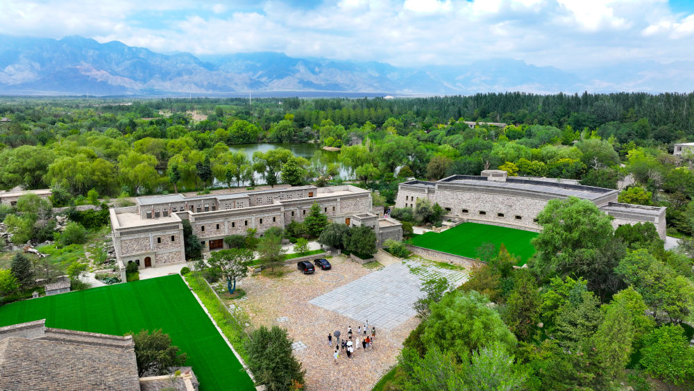 游客在寧夏銀川市西夏區(qū)鎮(zhèn)北堡鎮(zhèn)源石酒莊游玩(無人機(jī)照片,2024年8月7日攝)。新華社記者 馮開華 攝