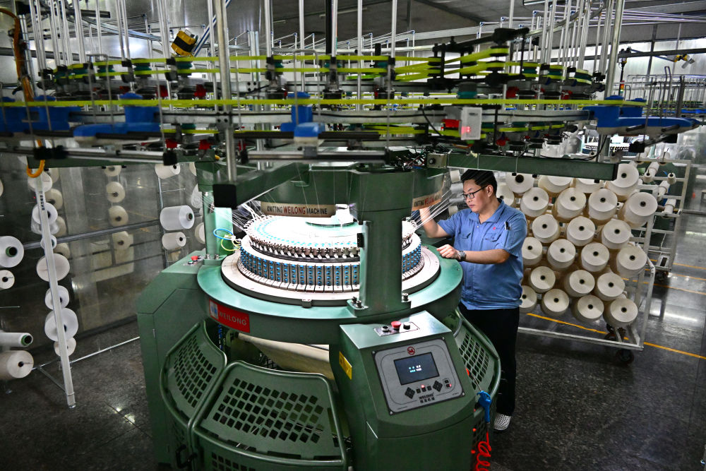 2025年3月25日,山東省青島市即墨區(qū)一家智慧紡紗企業(yè)的技術(shù)人員在維護生產(chǎn)高檔布料的自動化圓機。近年來,即墨區(qū)引導民營企業(yè)加大新技術(shù)、新裝備、新工藝的研發(fā)和投入,加快信息化和工業(yè)化融合升級改造。同時,通過對接企業(yè)用工需求、實施新技能培訓等舉措,促進紡織服裝產(chǎn)業(yè)可持續(xù)高質(zhì)量發(fā)展,也讓群眾在家門口實現(xiàn)穩(wěn)定就業(yè)和增收。