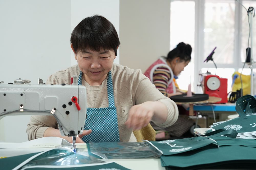 2025年3月27日,回遷居民在雄安新區(qū)“雄業(yè)創(chuàng)工坊”包裝工坊加工無紡布。工坊引入有持續(xù)發(fā)展?jié)摿?、對社區(qū)環(huán)境影響較小的產(chǎn)業(yè),為回遷群眾提供靈活多樣的就業(yè)崗位,讓回遷居民實現(xiàn)“上樓安家,下樓就業(yè)”。