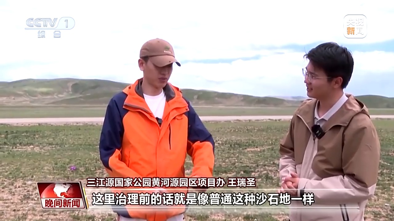 在海拔4300米的三江源黃河源園區(qū),茂密的草場一望無際,但是這片綠其實來之不易。這片區(qū)域,黑土灘的情況一度非常嚴重,黑土灘每擴張一分,草場就退縮一分。