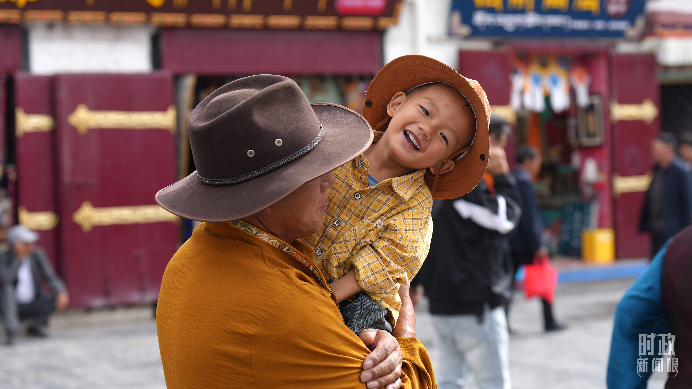 拉薩八廓街上的溫馨一幕。(總臺記者李晉拍攝)