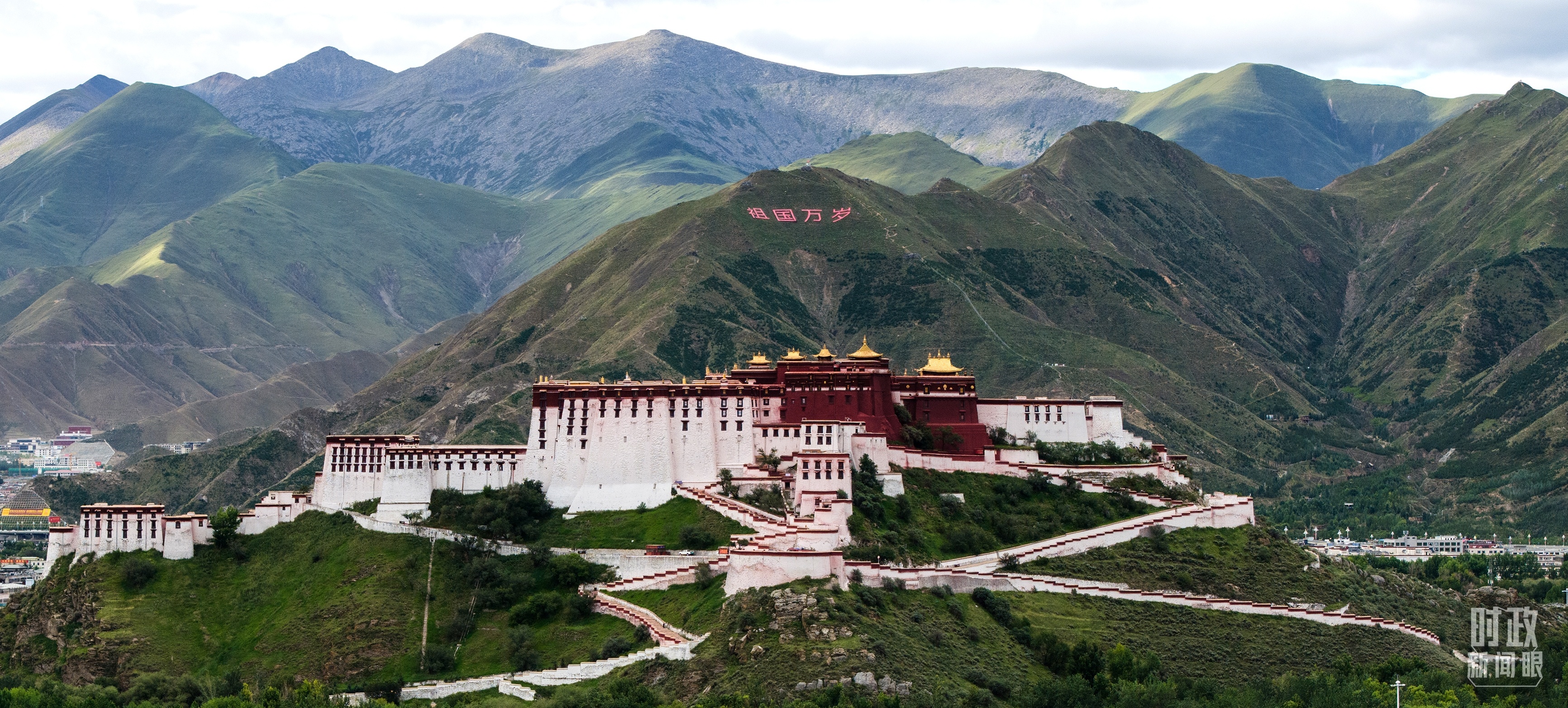 充滿節(jié)日氛圍的古城拉薩,從機場到住地主要街道兩旁彩旗舞動,各族群眾手持紅旗、捧著哈達(dá),齊聲歡呼。