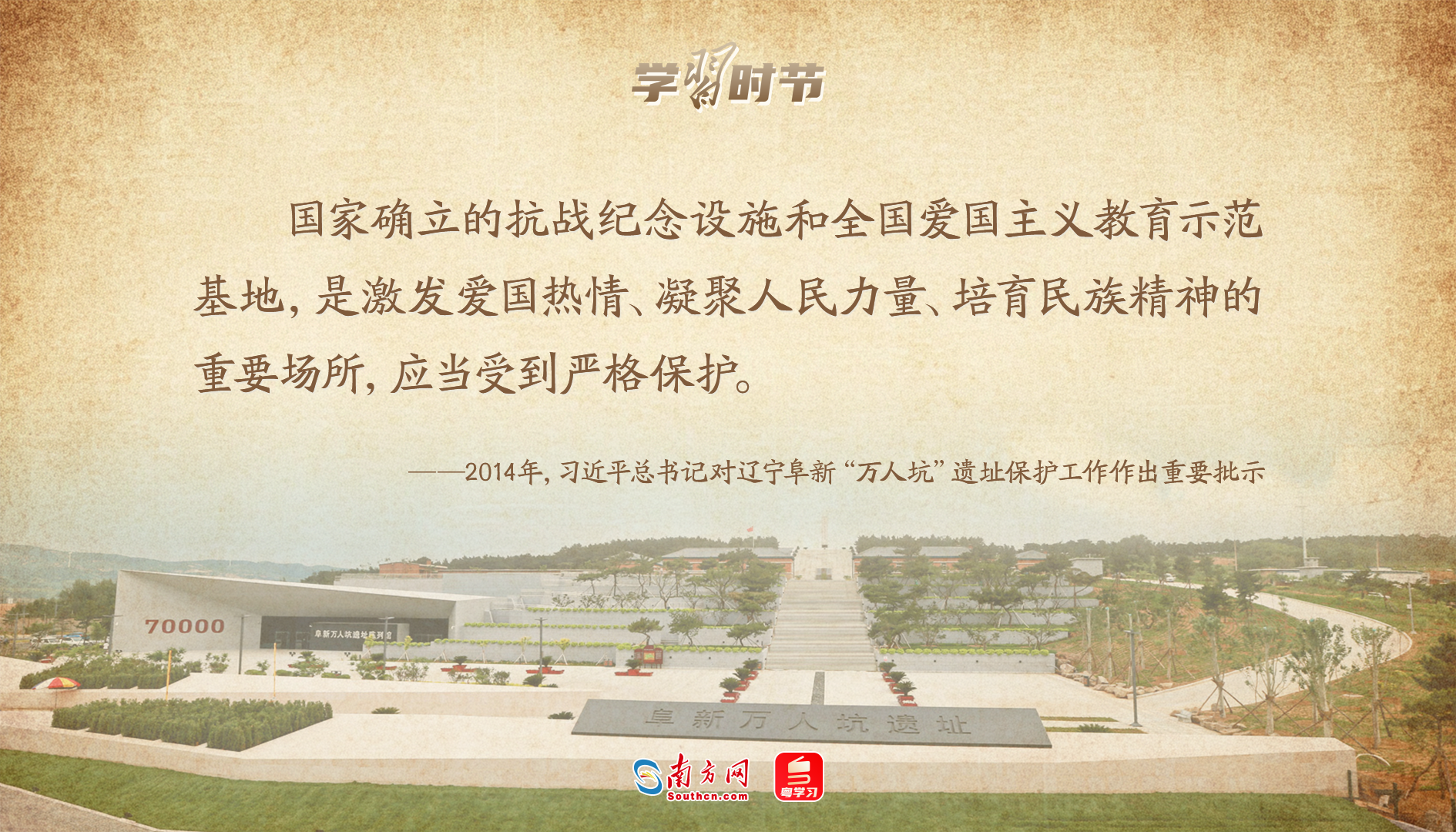 2014年9月,一份反映遼寧阜新“萬人坑”遺址遭破壞的報告送到了習近平總書記的案頭。習近平總書記對此寫下大段批示,要求遼寧省委、省政府和國家文物局要以高度的政治責任感,迅速落實對阜新“萬人坑”死難礦工紀念館的維修改善工作,盡早恢復其愛國主義教育基地功能。“有類似阜新情況的,務必抓緊進行維修,切實做好保護、利用工作,充分發(fā)揮其在加強愛國主義教育、培育社會主義核心價值觀中的重要作用。”