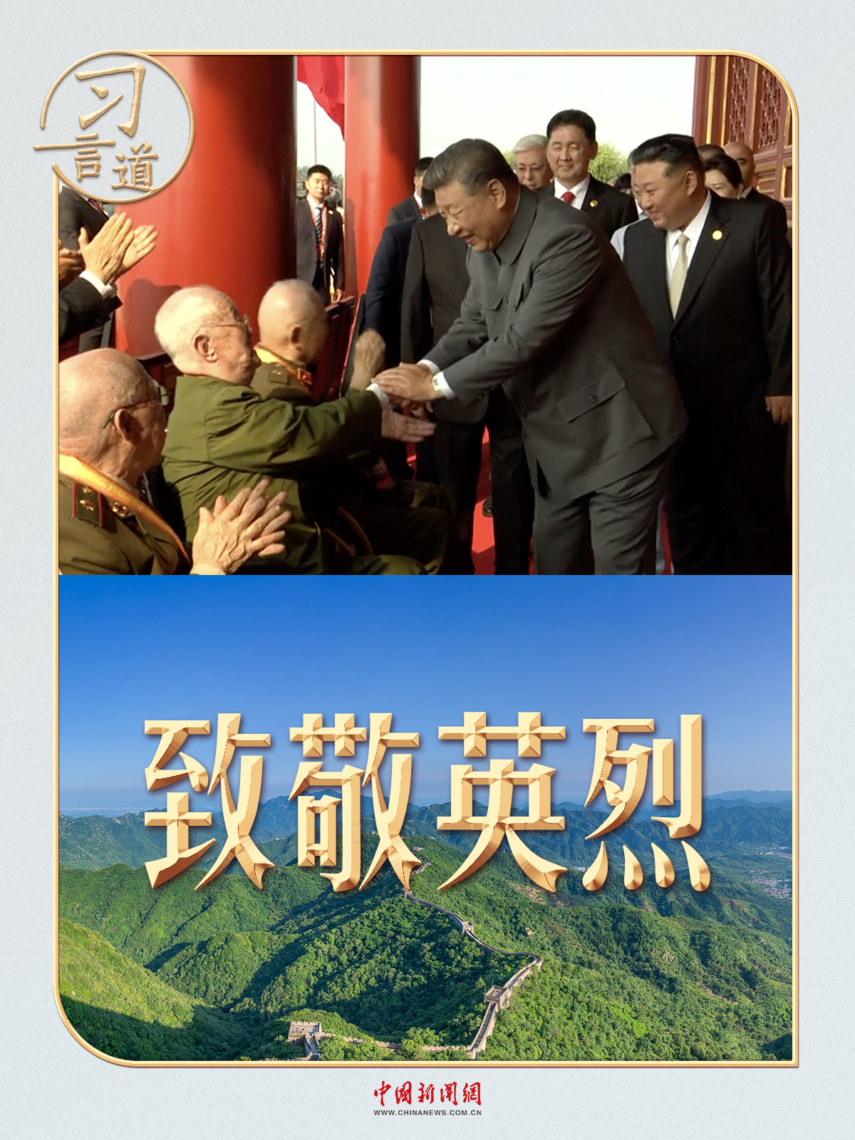 紀(jì)念中國(guó)人民抗日戰(zhàn)爭(zhēng)暨世界反法西斯戰(zhàn)爭(zhēng)勝利80周年大會(huì)開(kāi)始前,習(xí)近平總書(shū)記登上天安門(mén)城樓時(shí),同抗戰(zhàn)老戰(zhàn)士老同志代表親切握手,向他們表示崇高敬意。