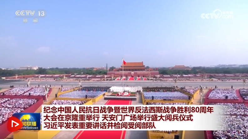銘記偉大歷史勝利,凝聚正義和平力量。9月3日上午,紀(jì)念中國人民抗日戰(zhàn)爭暨世界反法西斯戰(zhàn)爭勝利80周年大會在北京天安門廣場隆重舉行,以盛大閱兵儀式,同世界人民一道紀(jì)念這個偉大的日子,共同開創(chuàng)更加光明的未來。中共中央總書記、國家主席、中央軍委主席習(xí)近平發(fā)表重要講話并檢閱受閱部隊。