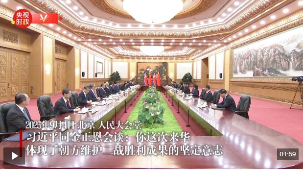9月4日晚,中共中央總書記、國家主席習近平在北京人民大會堂同來華出席紀念中國人民抗日戰(zhàn)爭暨世界反法西斯戰(zhàn)爭勝利80周年活動的朝鮮勞動黨總書記、國務(wù)委員長金正恩舉行會談。