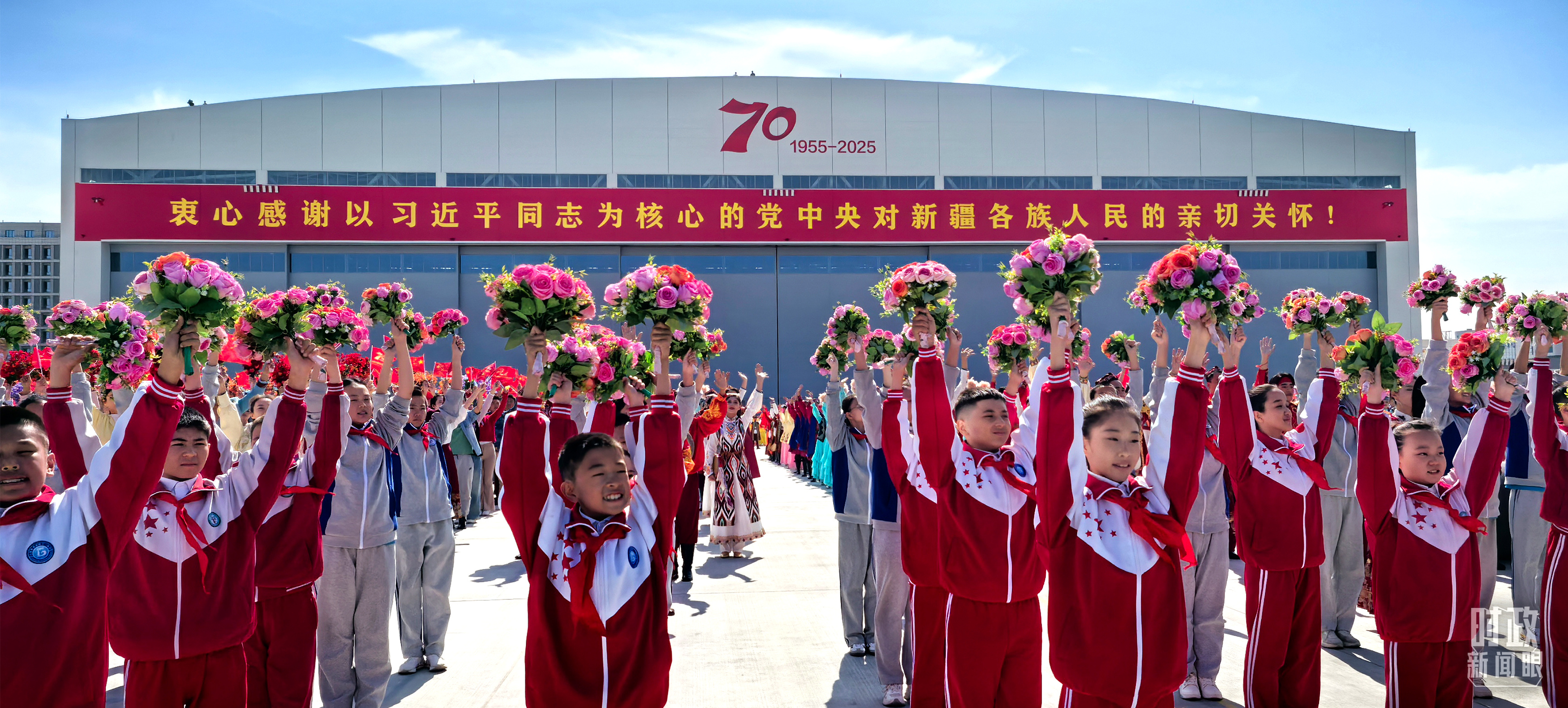 金秋時節(jié),晴空萬里。新疆各族群眾熱情迎接習(xí)近平總書記和中央代表團的到來。