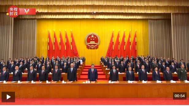 25日上午,新疆維吾爾自治區(qū)成立70周年慶祝大會(huì)在新疆人民會(huì)堂隆重舉行?,F(xiàn)場(chǎng)全體起立,高唱國(guó)歌。