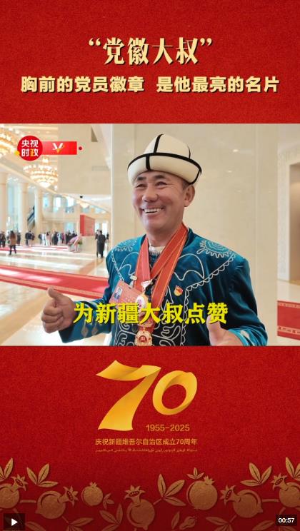 總臺記者在現(xiàn)場見到了來參會的新疆克州阿克陶縣木吉鄉(xiāng)的先進模范阿布都加帕爾·猛德。幾年前,阿布都加帕爾·猛德因一段視頻而備受關(guān)注。視頻中他幫助陷入泥潭的游客車輛脫困,游客提出給錢作為報酬,他謝絕了,并亮出胸前的黨員徽章。他也因此被網(wǎng)友稱為“黨徽大叔”。